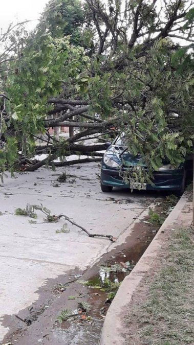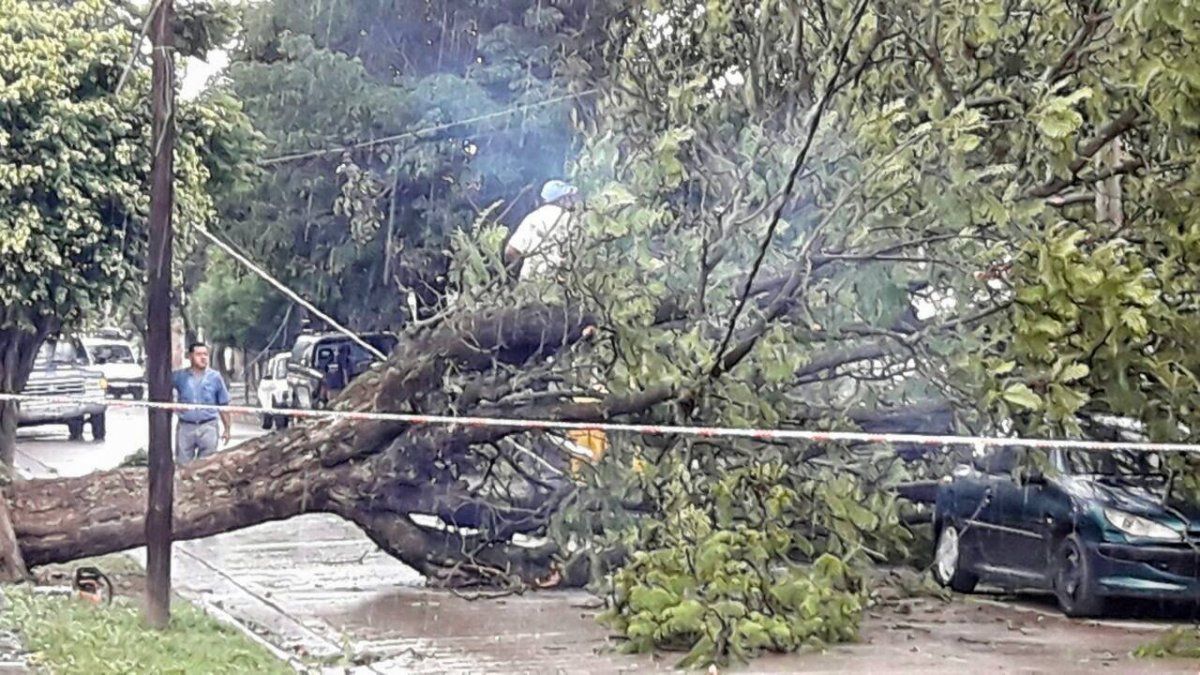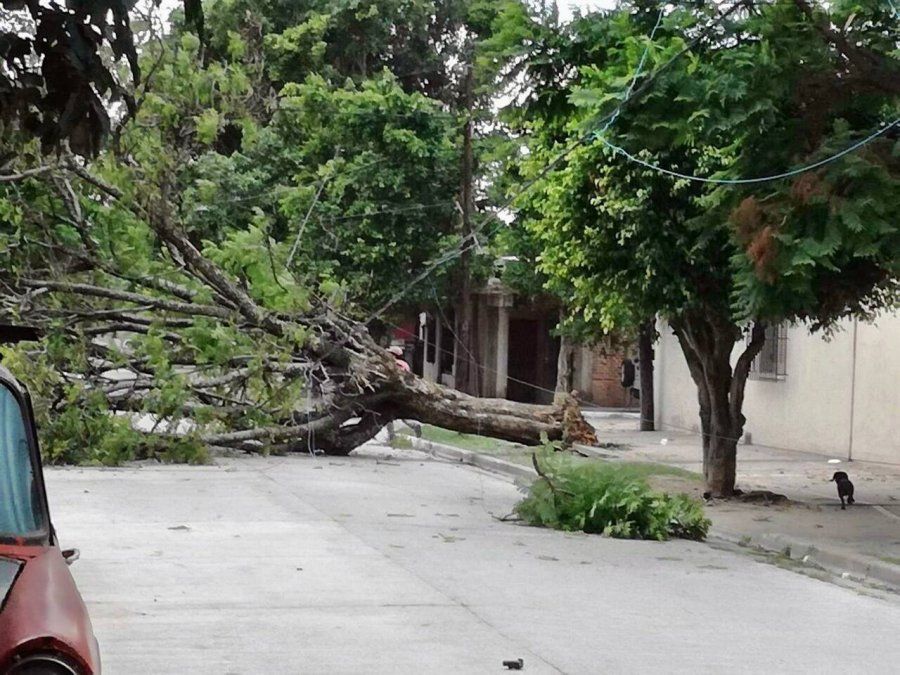 En el lugar trabajaron personal de Espacios Públicos, Defensa Civil y también Alumbrado Público ya que también se dio la caída de un poste de luz.