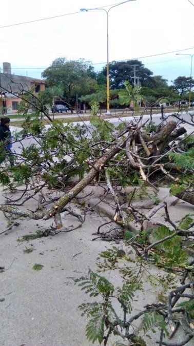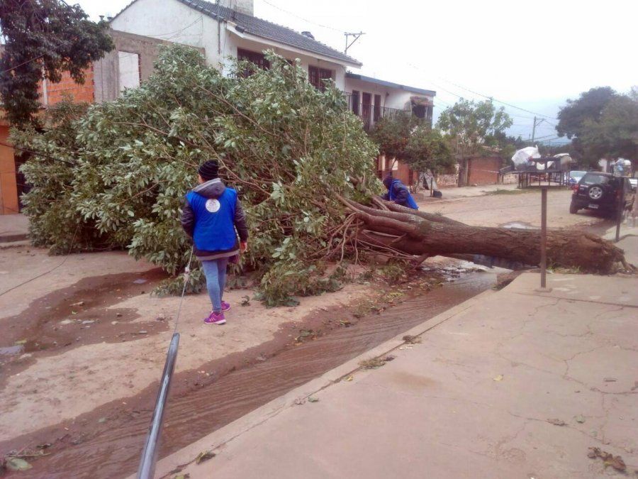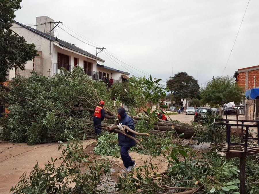 Dirección de Defensa Civil y personal de la Unidad de Bomberos de la localidad trabajaron en los barrios para remover los árboles y poner en condiciones los barrios para que no se produzcan complicaciones con el transito tanto vehicular como de peatones.