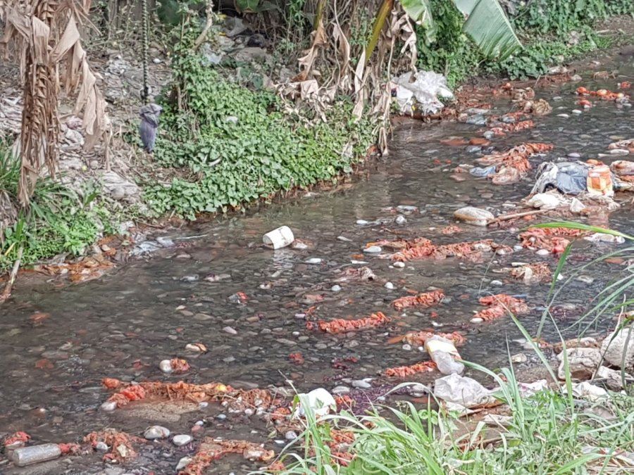 En las imágenes se aprecia la contaminación sobre este canal, principalmente con gran cantidad de tomates podridos, además de bolsas y cajas.