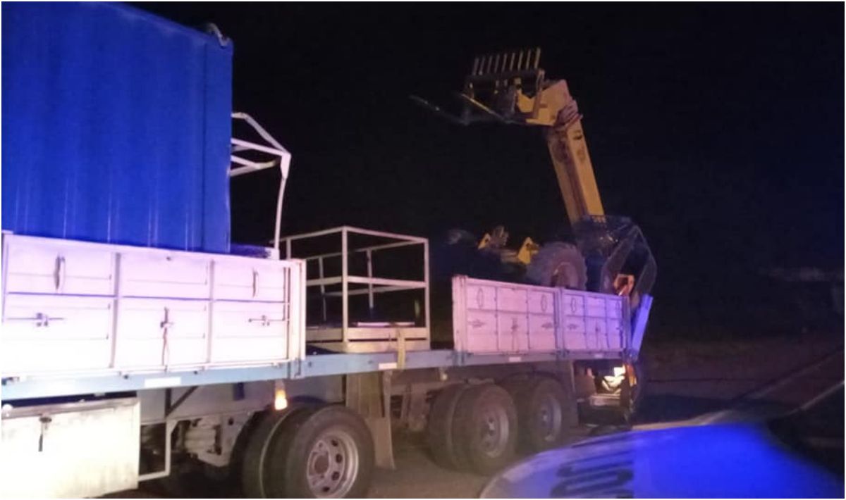 - Producto del impacto, una máquina retroexcavadora que transportaba cayó a la cinta asfáltica.