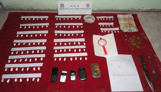 Fuentes policiales dijeron que en total se secuestraron 3,254 kilogramos de pasta base de cocaína, que estaba compactada y fraccionada en 5.732 dosis listas para ser distribuidas.
