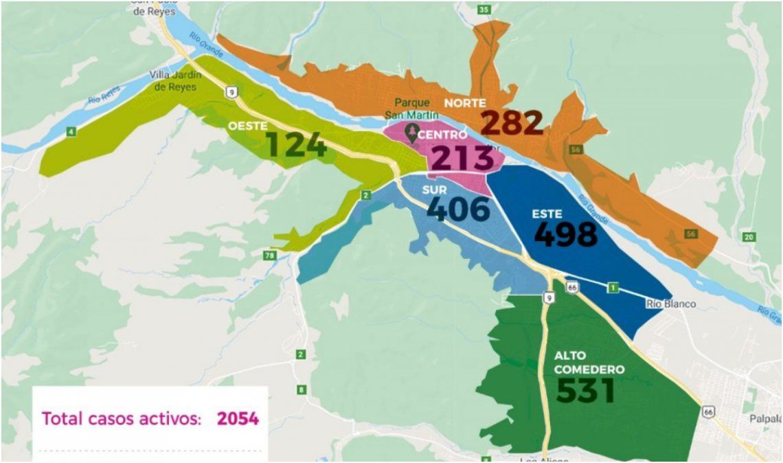 - Alto Comedero y la zona este de la ciudad son las que concentran la mayor cantidad de contagios.