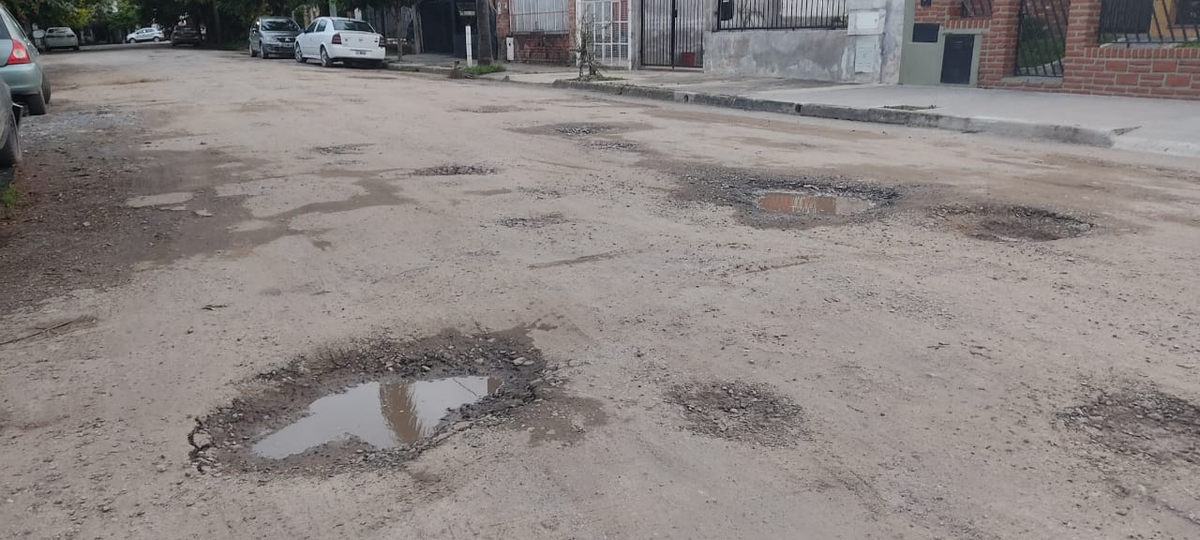 “Está toda llena de pozos y no tenemos respuestas positivas de la Municipalidad para el asfalto de la calle. A veces uno llama a los remiseros y a veces no vienen por temor a dañar los vehículos. Esto está así desde que se inauguró el barrio, más de 50 años”, relató una residente del sector.
