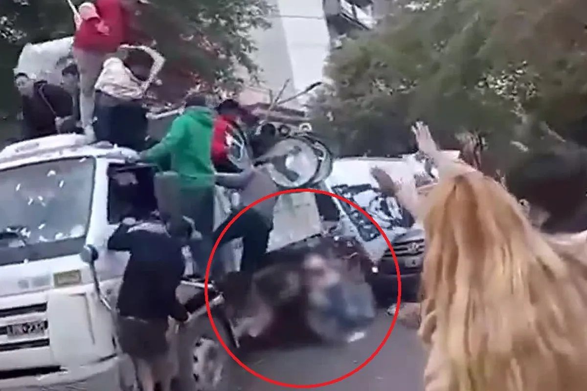 El accidente se produjo durante los festejos encabezados por Norma Fuentes y el gobernador Gerardo Zamora; el momento quedó registrado en un video tomado por uno de los participantes de la caravana política.