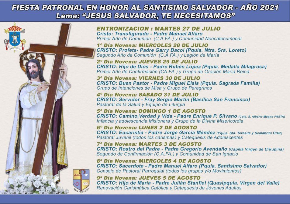 El lema de este año es “Jesús Salvador, te necesitamos”. Este martes 27 de julio tendrá lugar la entronización de la imagen del Santísimo Salvador.