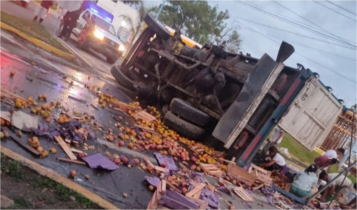 Camión con frutas volcó en Santo Domingo