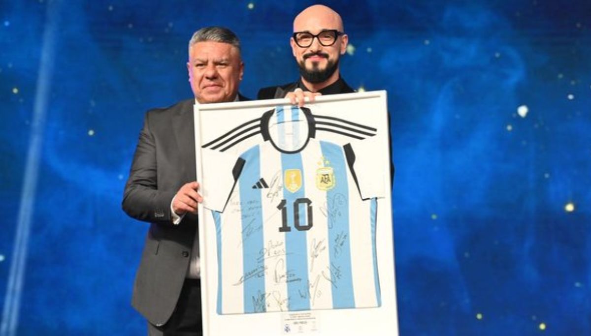 Tapia le obsequió al cantante una camiseta de la Selección firmada por todos los jugadores campeones del mundo. "Él nos está dando un mensaje, que recordemos nuestras canciones patrias, que cantemos el himno como lo tenemos que cantar", dijo Chiqui sobre Abel.