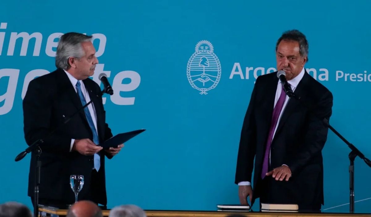 Luego de dedicarle esas palabras a Kulfas, Alberto Fernández prosiguió con el juramento de Scioli, al que le dijo: “Quiero darte las gracias, Daniel, porque cuando te llamé estuviste. Tenemos una amistad de muchos años. Gracias por venir a hacerte cargo en este tiempo. Llegó tu hora”.