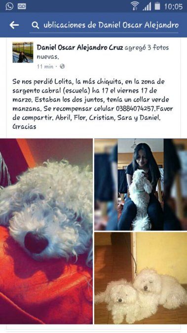 Para mayor información comunicarse al 3884074257. La familia ofrece recompensa.