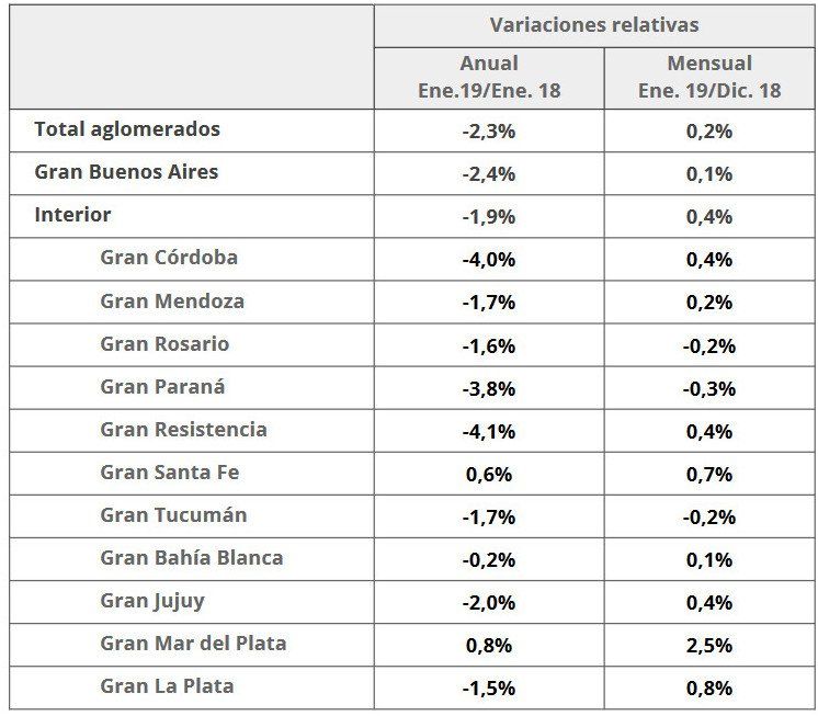 En enero el empleo registrado en el sector privado cayó - 2 % respecto a igual mes del 2018 en el aglomerado urbano Gran Jujuy según la Encuesta de Indicadores Laborales (EIL) del ex ministerio de Trabajo de la Nación.