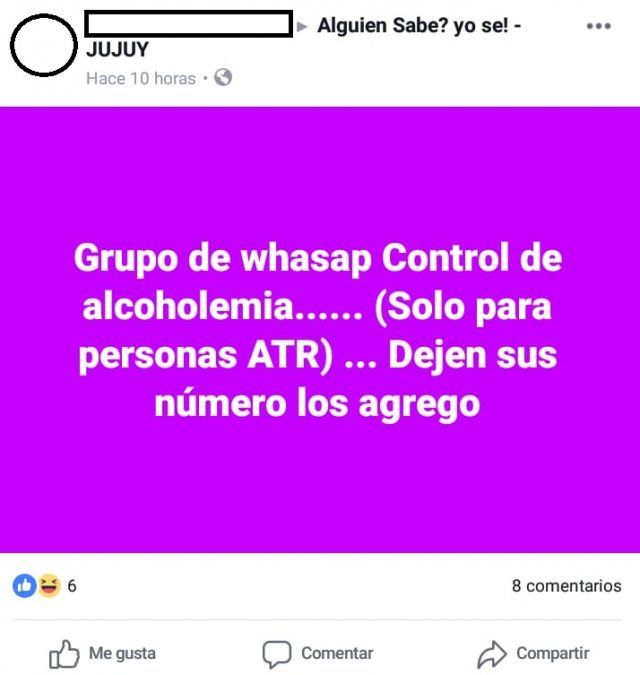 A raíz de esta normativa, se hizo “viral” en redes sociales, específicamente en Facebook una publicación de un grupo de Whatsapp de jujeños para intentar eludir los operativos de control.