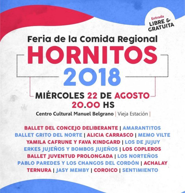 Desde hoy 22 de agosto y hasta el domingo 26, se podrá disfrutar de la mejor gastronomía regional y los más destacados artistas, en el marco de los tradicionales Hornitos.