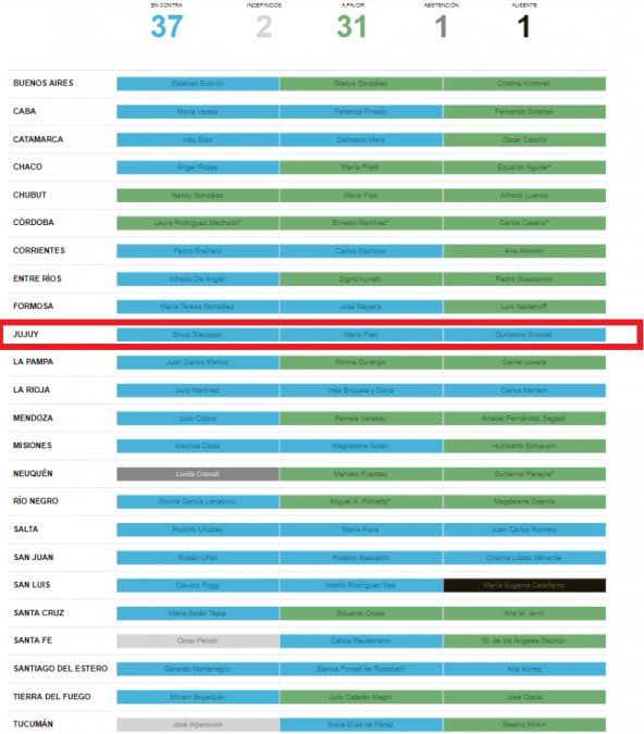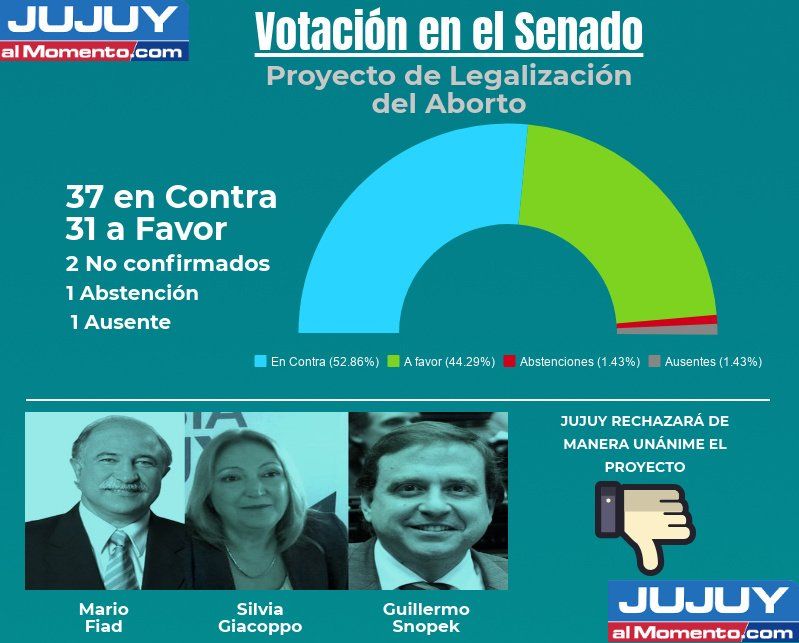 Se sabe que los tres representantes de la provincia en el Senado, Guillermo Snopek, Silvia Giacoppo y Mario Fiad (presidente de la comisión de Salud), han decidido votar en contra de la despenalización.