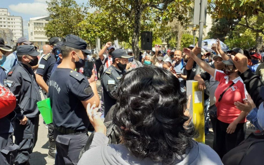 Con motivo del reclamo de 48 hs que lleva adelante el SEOM por el incremento salarial impuesto por el gobierno y el pedido de pase a planta y categoría para los municipales, los manifestantes se instalaron en distintas rutas de la provincia y frente a Casa de Gobierno.
