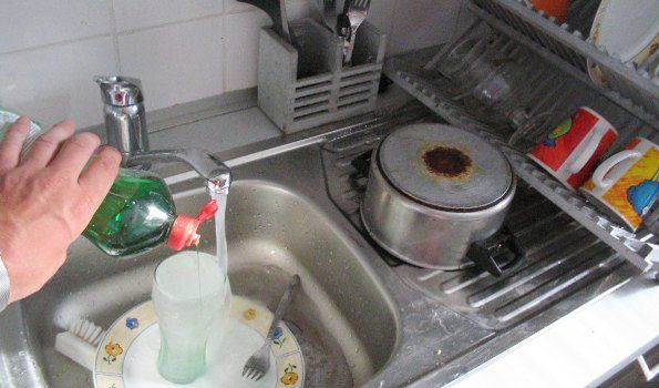 * Remojar los utensilios de una sola vez. Si tienen mucha grasa, utilizar agua caliente. Enjabonarlos con la canilla cerrada y enjuagarlos rápidamente bajo un chorro moderado.