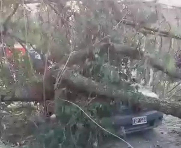 Al parecer algunos particulares estaban podando el árbol y provocaron que el mismo se precipite sobre la calzada dañando a dos vehículos, un Gol Tren gris que resultó el más perjudicado y otro marca Volkswagen Voyage blanco.