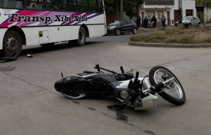Fuerte choque entre una moto y un colectivo