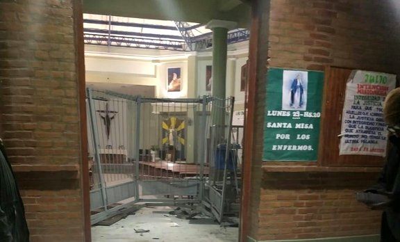 El conductor de un auto que circulaba a toda velocidad se llevó por delante las rejas y las puertas del templo y terminó adentro.