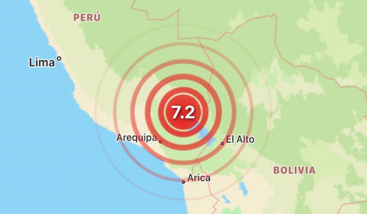 Un sismo de magnitud 7,2 sacudió el sur de Perú este jueves, cerca de la frontera con Bolivia, según reportes del Servicio Geológico de Estados Unidos (USGS, por sus siglas en inglés).