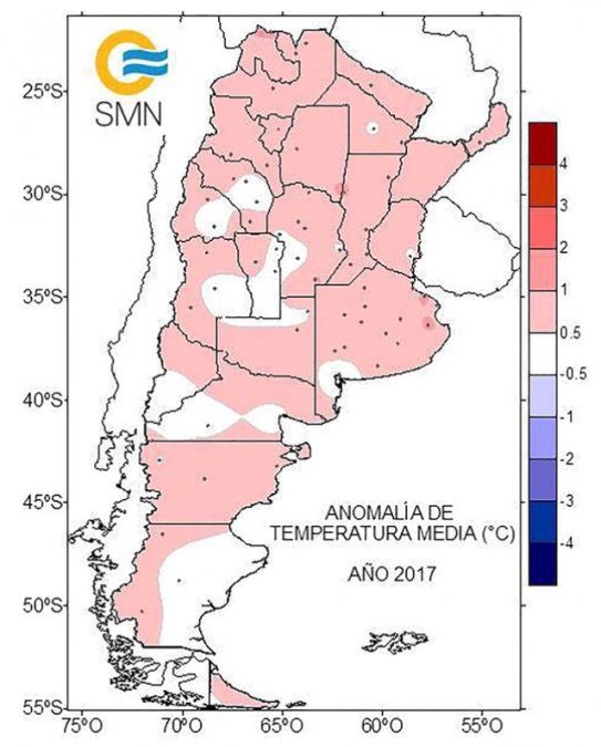 "De acuerdo a nuestros registros, a nivel nacional el 2017 ha sido el más cálido de la historia. Con un desvío respecto de la temperatura media normal de +0.66°C, superó la marca del año 2012, en que se había alcanzado un desvío de +0.63°C", indicó mediante un comunicado el organismo oficial.