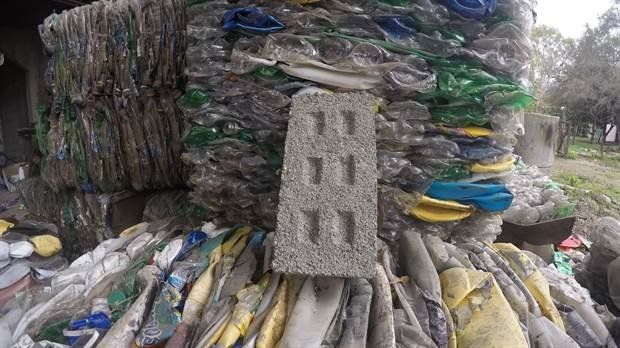 Al ser consultado sobre el proceso de creación, indicó “se tritura el plástico hasta que queda como arena, se lo procesa con cemento, se lo compacta”.