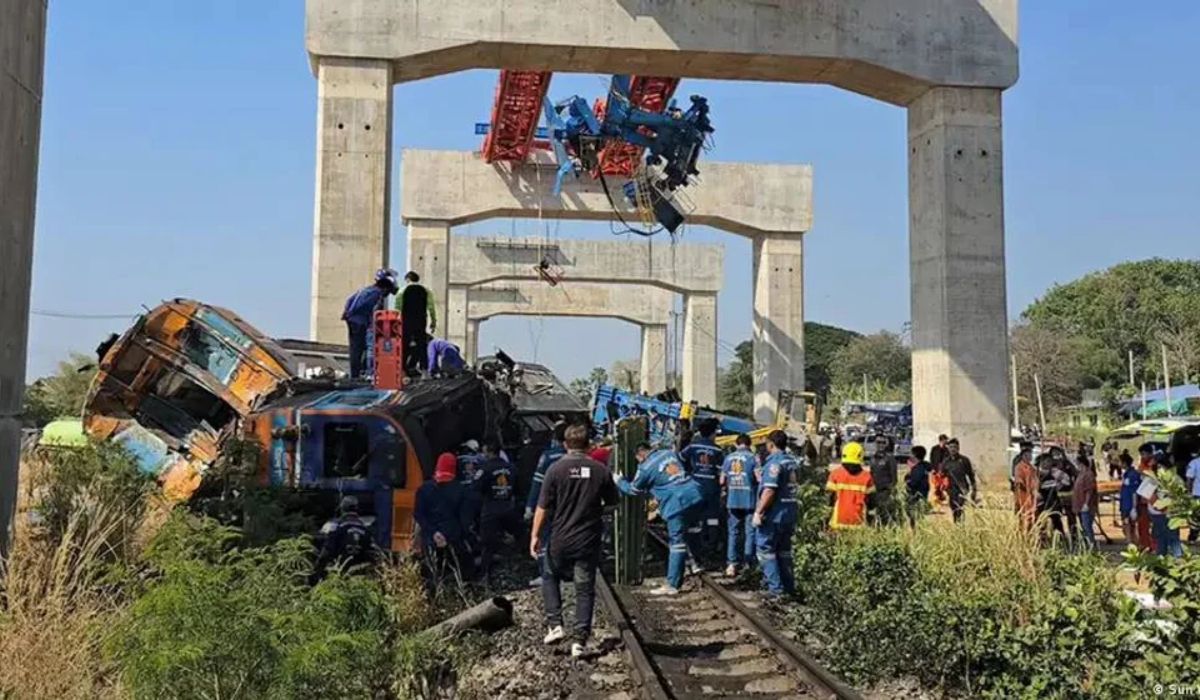 Según informes de medios internacionales, el trágico hecho ocurrió en la localidad Ban Thanon Khot, subdistrito de Si Khiew, cuando la grúa cedió sobre un tren que viajaba de Bangkok a la provincia de Ubon Ratchathani.
