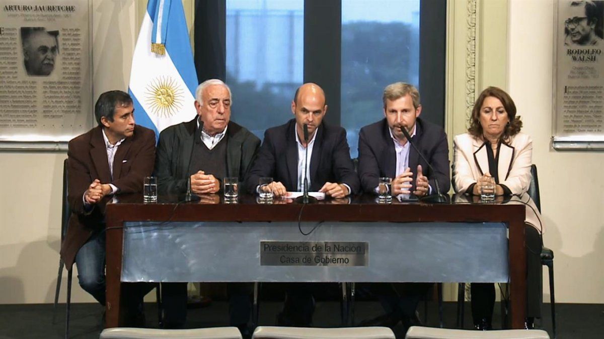 En la conferencia de prensa también estuvieron presentes el ministro de Interior, Rogelio Frigerio, la intendente de Rosario, Mónica Fein, y su par de La Rioja, Alberto Paredes Urquiza, y el secretario general de la UTA, Roberto Fernández.