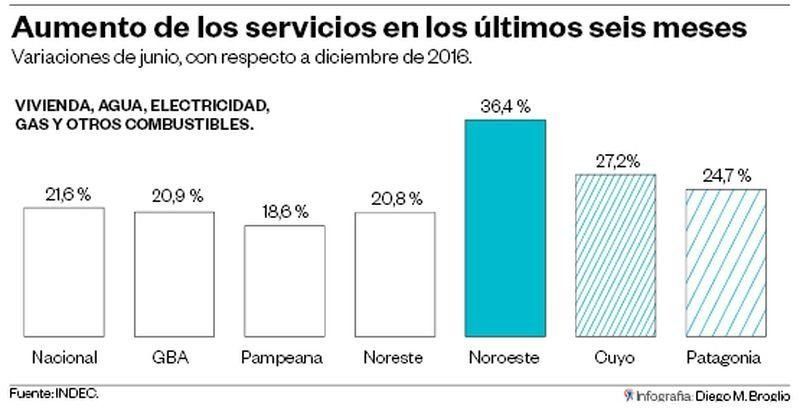 El Indec toma variaciones desde diciembre hasta junio en gas, agua, electricidad y nafta. Jujuy es una de las zonas más castigadas.