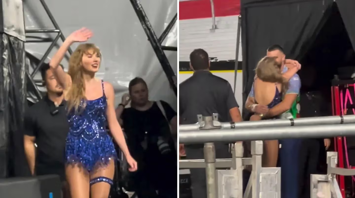 Después del concierto, el novio de la cantante la esperó detrás del escenario y se besaron frente a las swifties, que deliraron y ovacionaron al jugador de fútbol americano.