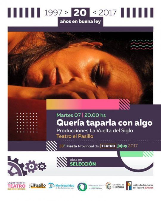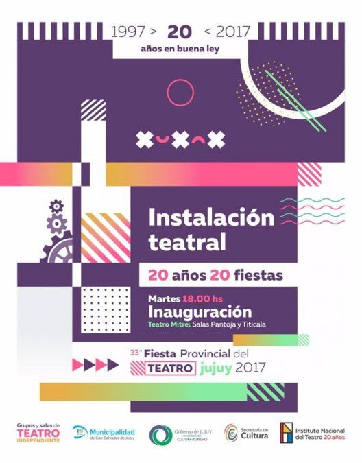 En el marco de la 33° Fiesta Provincial del Teatro JUJUY 2017, Festejamos los 20 años de la sanción de la ley 24.800 "LEY NACIONAL DEL TEATRO" - Razón por la cual se realizará una instalación en los Altos del Teatro Mitre a cargo del Equipo multidisciplinario: María Eugenia montero, Andrea Campos, Francisco Lizarazo y Marcela Cura.