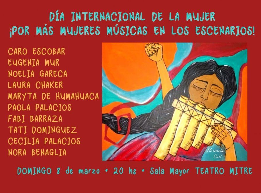 La Red de Mujeres Músicas de Jujuy invitó a la comunidad a ser parte de un concierto en torno al Día Internacional de la Mujer, este domingo, 8 de marzo a las 20.00 en la Sala Mayor de Teatro Mitre.