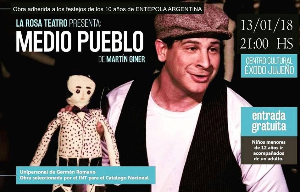 Medio Pueblo, es una comedia para mayores de 12 años que trata sobre un personaje que reconstruye la historia de un pueblo, y prueba como un hecho insignificante como la caída de un botón puede desembocar en una catástrofe.