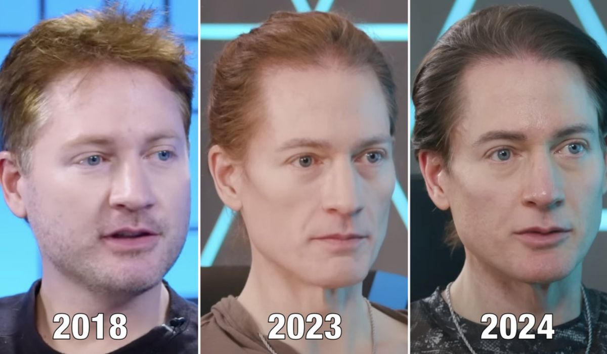 El magnate tecnológico estadounidense, Bryan Johnson, que gasta 2 millones de dólares al año para intentar revertir su envejecimiento, ha compartido en X una imagen con tres fotos suyas que, visualmente, resaltan la deferencia en su apariencia a lo largo de los últimos años.