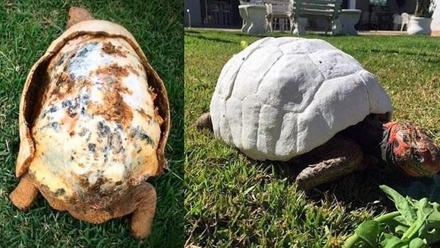Como puedes comprobar en este vídeo de YouTube que resume el proceso completo, Caldera hizo maravillas con sus pinceles y Freddy ya luce orgullosa su flamante caparazón artificial: