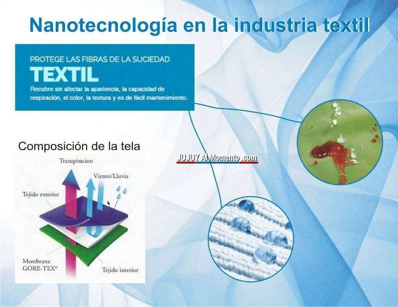 Utilizando la tecnología del plasma y mediante un proceso absolutamente ecológico, se han creado prendas anti manchas que repelen la lluvia y cualquier líquido. La moda en las prendas de vestir, además de tener fines estéticos, también empieza a incluir la nanotecnología para brindar otras opciones para vivir mejor como calmar el estrés, repeler mosquitos, tratar alergias, entre otros.