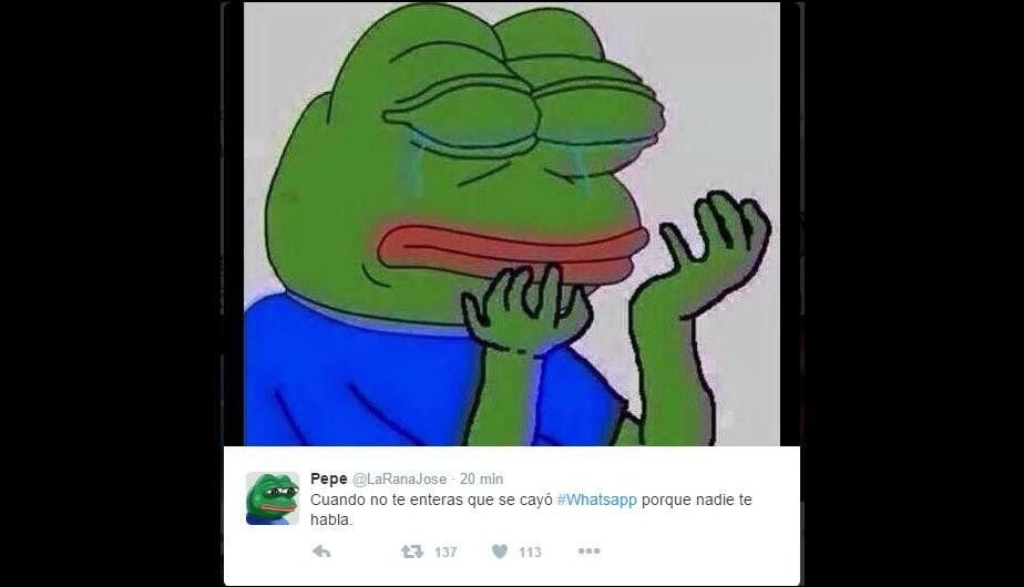 Tecnología | Tecnología | Se cayó WhatsApp y los memes no tardaron en llegar Pa app de mensajería más utilizada en la actualidad, sufrió una caída a nivel mundial, así lo alertaron los usuarios en las redes sociales, específicamente Facebook y Twitter. ¿Te dejó de funcionar? 03 de mayo de 2017 - 00:00