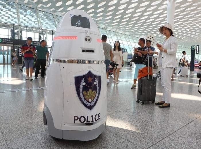 Están en la estación aérea de la ciudad de Shenzhen, una de las que tiene mayor tráfico. Los robots tienen arma de defensa y pueden soltar descargas eléctricas para reducir a las personas.