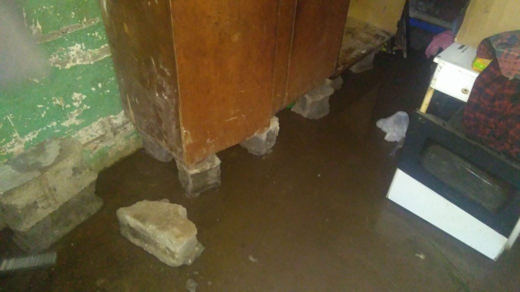 Por el temporal, a una familia con cuatro menores se le vino encima una de las paredes de su casa. Solicitan auxilio desde el lunes pasado.