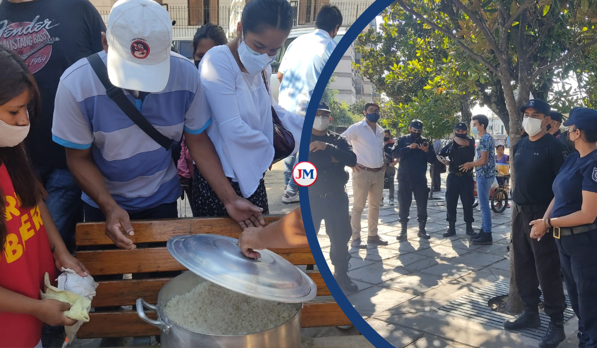 Tensión con manifestantes: “Mandaron a la policía a sacarnos el guiso de arroz”