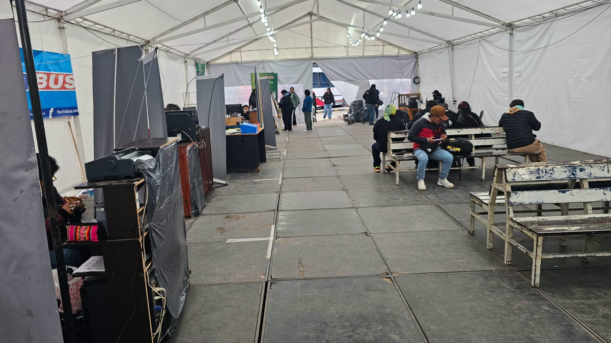 Florencia, trabajadora de la terminal, mostró el malestar que existe en el personal de las diferentes empresas porque la carpa no cuenta con seguridad, además de registrar inconvenientes con la conectividad todo el tiempo.
