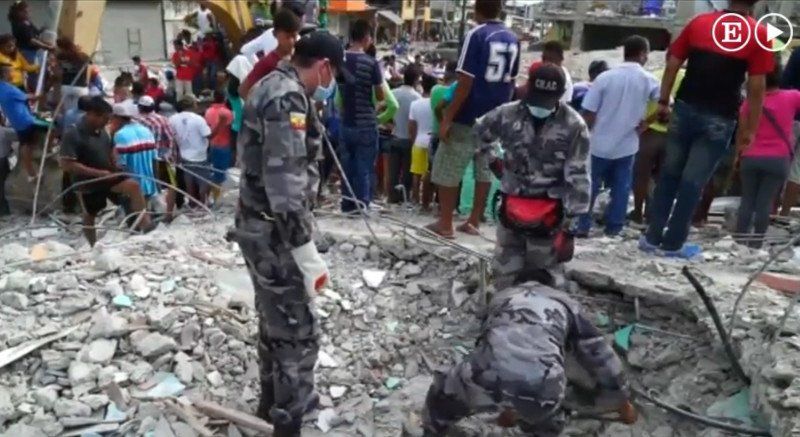Los equipos de rescate buscan sobrevivientes entre los escombros que dan a lugares como Pedernales, en el epicentro del desastre, el aspecto de un lugar castigado por un bombardeo, como lo describió el ministro del Interior, José Serrano.