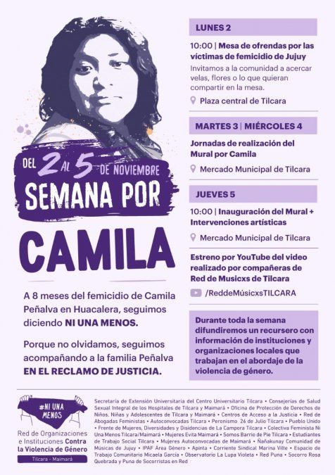 La iniciativa estuvo a cargo de la Red de organizaciones contra la violencia de género de Tilcara y Maimará, que a lo largo de esta semana realizarán diversas actividades a 8 meses de la muerte de Camila Peñalba (25) ocurrida el 5 de marzo en Huacalera y cuyo caso continúa en investigación.