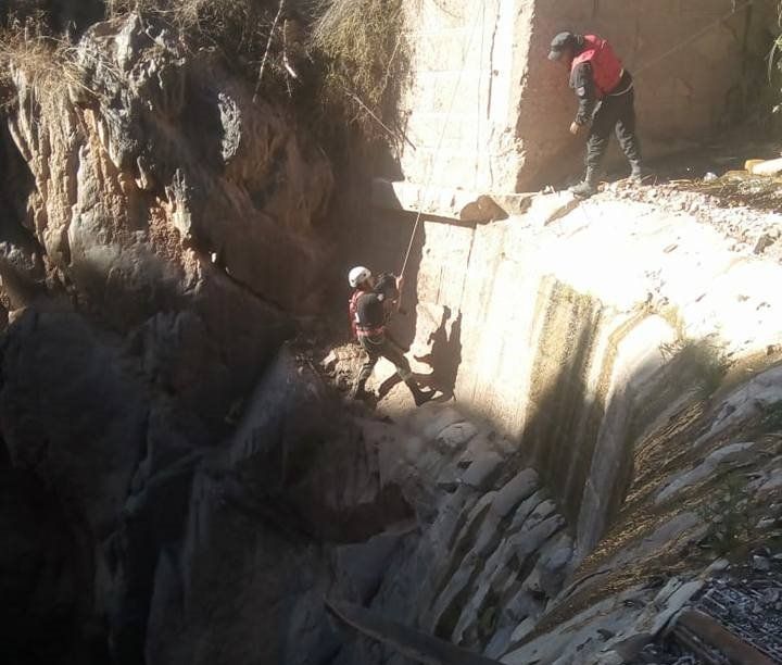 Bomberos de Tilcara desplegaron un importante operativo para rescatar a un caprino que había quedado atrapado en un barranco en el peligroso atractivo turístico.