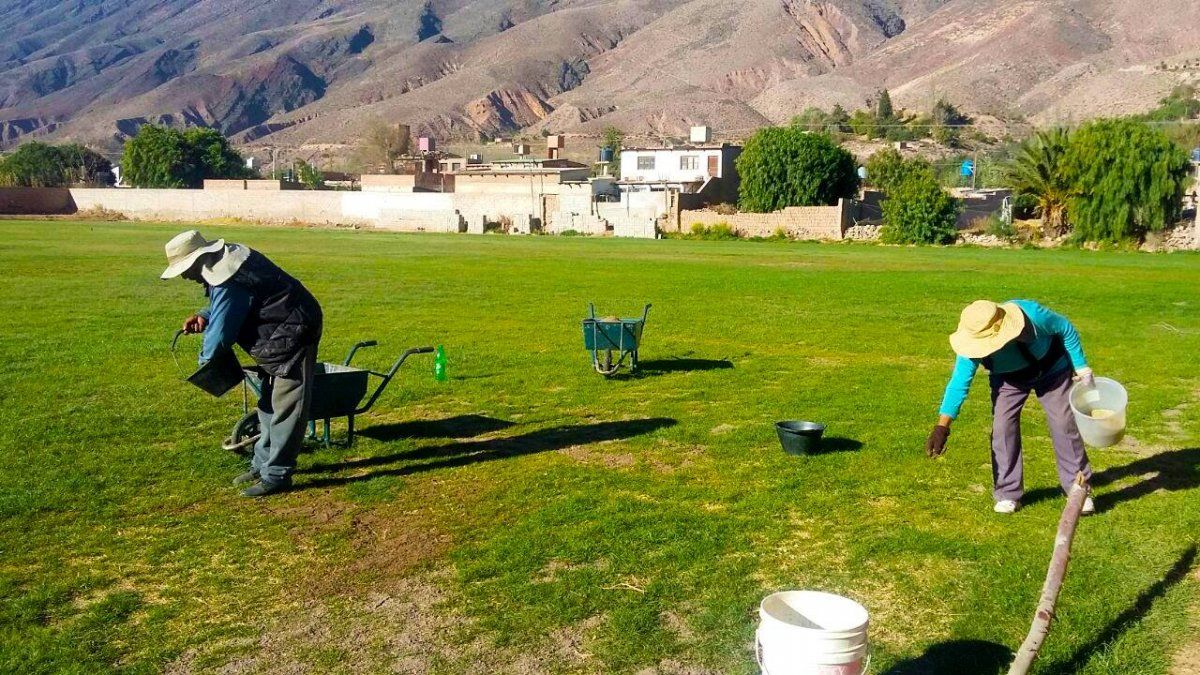 La Fundación Tamborcitos, donó mil kilos de semillas que fueron colocados en el campo de juego para poder reconstruirlo eficazmente.
