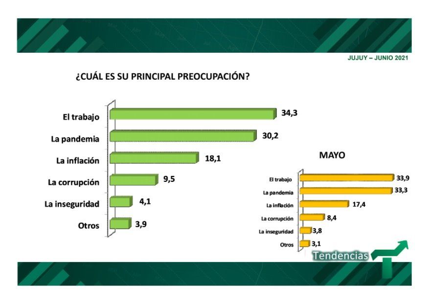 Los resultados arrojaron que la principal preocupación de los encuestados es el trabajo (34,3 %), la pandemia (30,2 %) y la inflación (18,1 %) en ese orden.