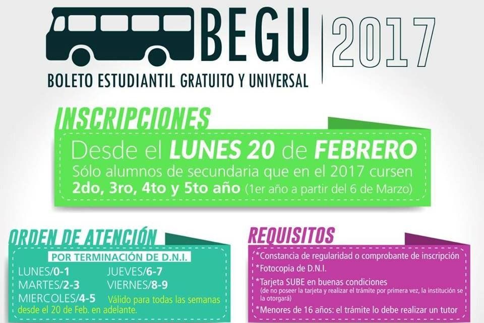 Desde este lunes en las oficinas del BEGU se podrán inscribir alumnos que cursen de 2do a 5to año del secundario.
