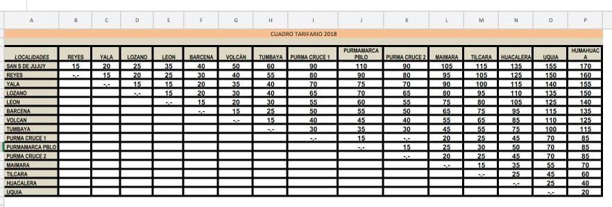 Nuevo cuadro tarifario hacia la Quebrada de Humahuaca