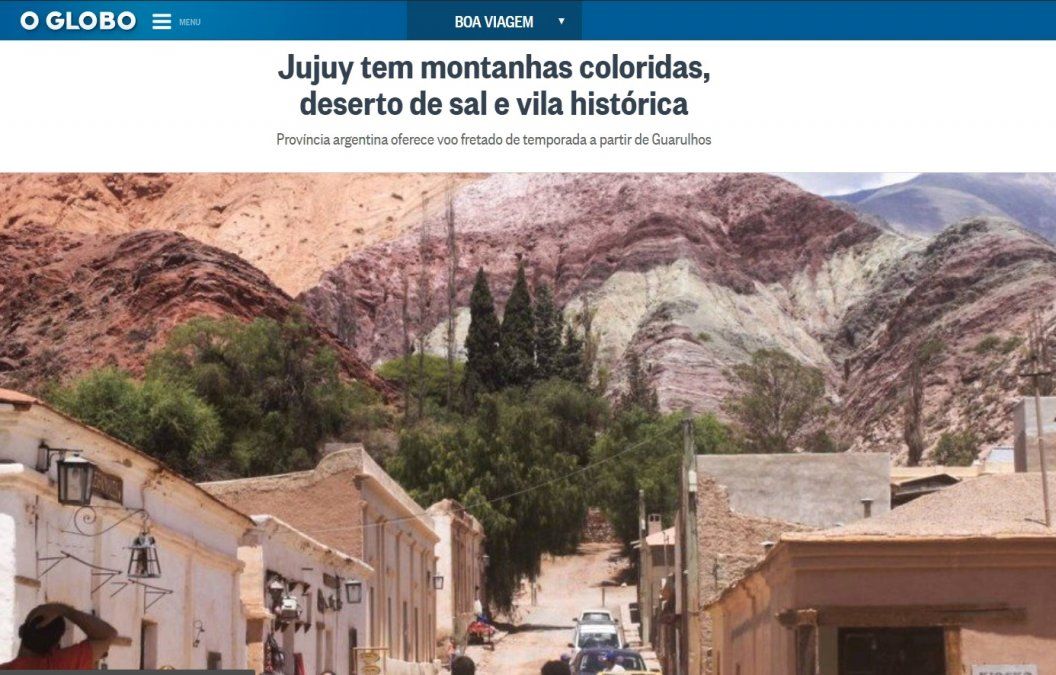 Los paisajes jujeños nuevamente son noticia, esta vez en un medio de Brasil como "O Globo" que presentó en sus páginas a Purmamarca, en el marco de la visita que realizaron periodistas de ese medio que llegaron en el primer vuelo San Pablo-Jujuy.