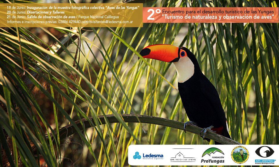 Ledesma convoca específicamente a desarrolladores de turismo y a los aficionados de la naturaleza de Jujuy, a participar de esta propuesta que cuenta con el apoyo de la Asociación de Aves Argentinas, Fundación ProYungas y la Intendencia de Parque Nacional Calilegua. La intención es impulsar el desarrollo de emprendedores turísticos de la región y brindar las herramientas para que el turista pueda disfrutar de las Yungas recreativa y responsablemente.