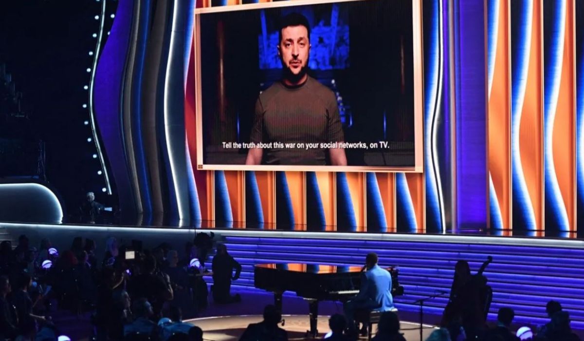 Este domingo 3 de abril se está llevando a cabo en la ciudad de Las Vegas, Nevada, Estados Unidos la 64ta ceremonia de los Grammy. Durante la entrega de premios se transmitió un mensaje pregrabado del presidente ucraniano Volodymyr Zelenski.